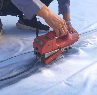 Welding Specifications: Double-track hot-melt welding machine is preferred for HDPE geomembrane welding. Extrusion welding or hot air gun is only used for weld repair, local coverage, or corners and complex parts that cannot be reached by the hot-melt welding machine. After welding, the HDPE membrane at the weld shall be fused into a whole, without defects such as virtual welding, missing welding, or excessive welding; the two overlapping layers of geomembrane shall be flat and smooth, without wrinkles or offset, to ensure tight welding.